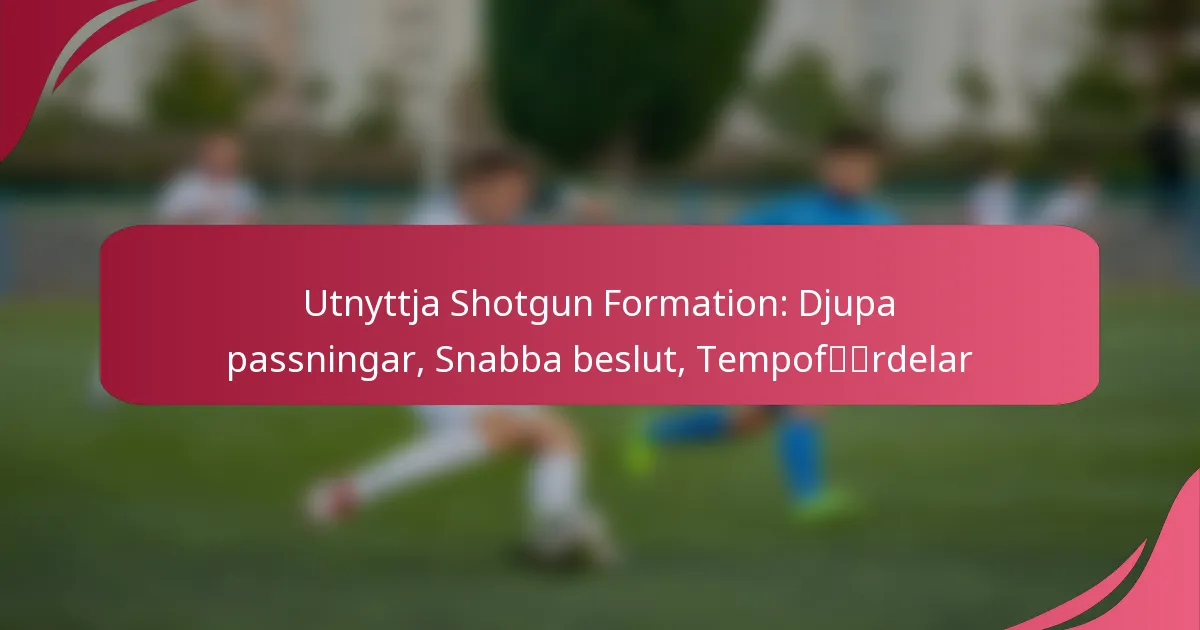 Shotgunformationen är en strategisk offensiv uppställning inom fotboll som placerar quarterbacken flera yards bakom centern, vilket förbättrar sikten och beslutsfattandet. Denna uppställning underlättar inte bara djupa passningsspel utan främjar också ett snabbare tempo, vilket gör att lagen kan genomföra spel snabbt och utnyttja poängmöjligheter. Genom att utnyttja fördelarna med shotgunformationen kan anfall effektivt utmana försvar och upprätthålla ett dynamiskt tempo genom hela matchen.